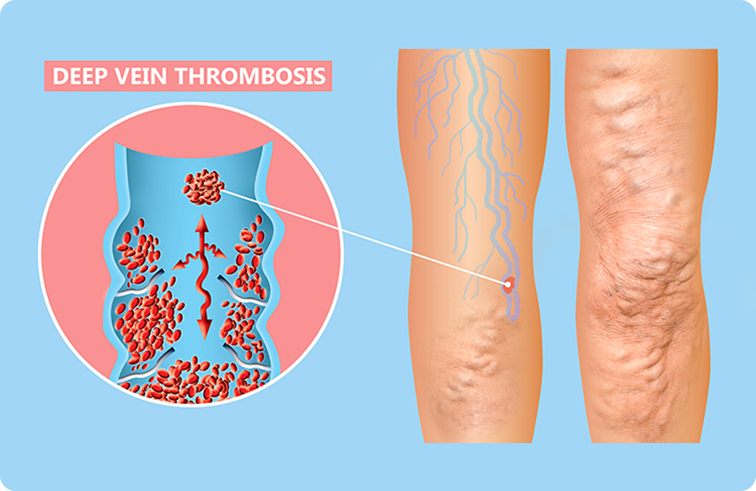 A clot is a blockage that can obstruct a blood vessel. It often starts in the leg (swelling, warmth, pain in the calf). If the clot dislodges and travels to the lungs, it can lead to a pulmonary embolism (sudden shortness of breath, chest pain, rapid heartbeat).