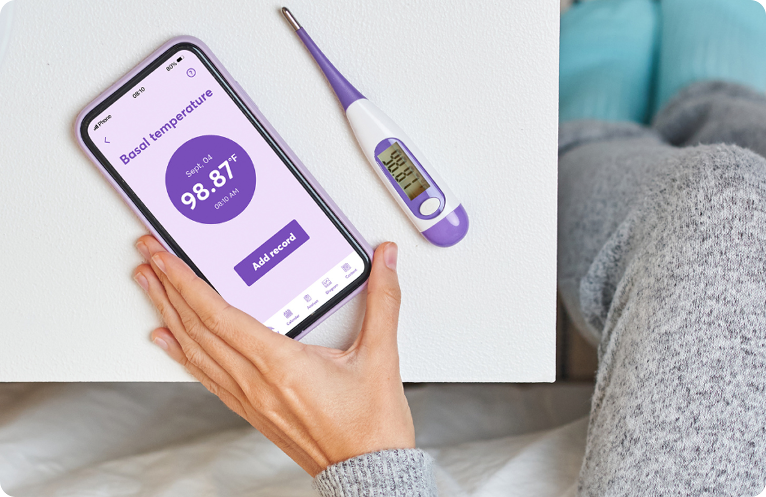 A thermometer (or sensor) provides a value every morning, and apps chart the curve, marking "safe" and "unsafe" days.